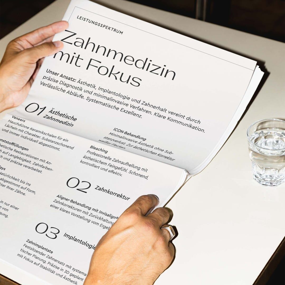 Hier verbinden sich zahnmedizinische Präzision mit durchdachtem Service. In ruhiger Atmosphäre widmen wir uns ausschließlich Ihnen – ohne Parallelbehandlungen, mit vollständiger Konzentration auf Ihre Anliegen. Moderne Diagnostik, minimalinvasive Verfahren und ästhetische Behandlungskonzepte prägen unsere tägliche Arbeit. Contemporary Dentistry ohne Kompromisse.